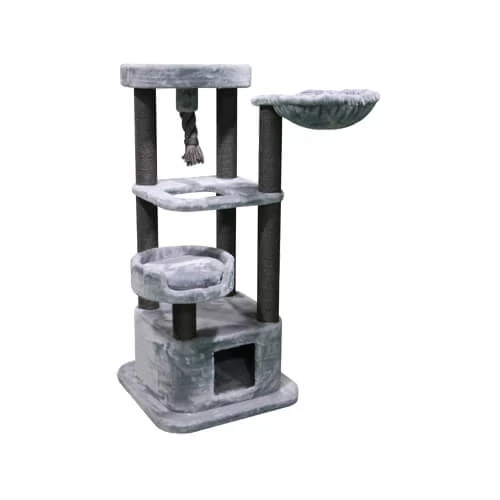 Ziet dit krabmeubel er niet heerlijk zacht uit? De Krabpaal Savannah van Adori bevat overal een heerlijke zachte pluche stof. Op ieder plekje zal uw kat een lekker slaapplekje kunnen vinden. Onderin een donker holletje waar uw kat onverstoord zijn dutjes kan doen. Daarnaast nog drie mandjes om heerlijk in weg te doezelen. Onder het bovenste mandje hangt een dik touw. Deze zorgt, net als de sisalstammen, voor extra speel- en krabplezier.