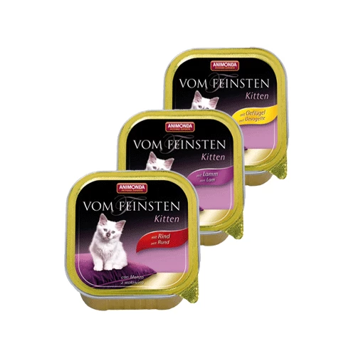 Animonda Vom Feinsten Kitten is kattenvoer voor kittens en houdt rekening met de behoefte van de jonge katjes. De voeding bevat zorgvuldig geselecteerde vleessoorten in verschillende soorten lekkere variaties. Er zitten geen kunstmatige kleurstoffen en conserveringsmiddelen in Animonda Vom Feinsten Kitten. Het voer is verkrijgbaar in de smaken rund, gevogelte en lam.