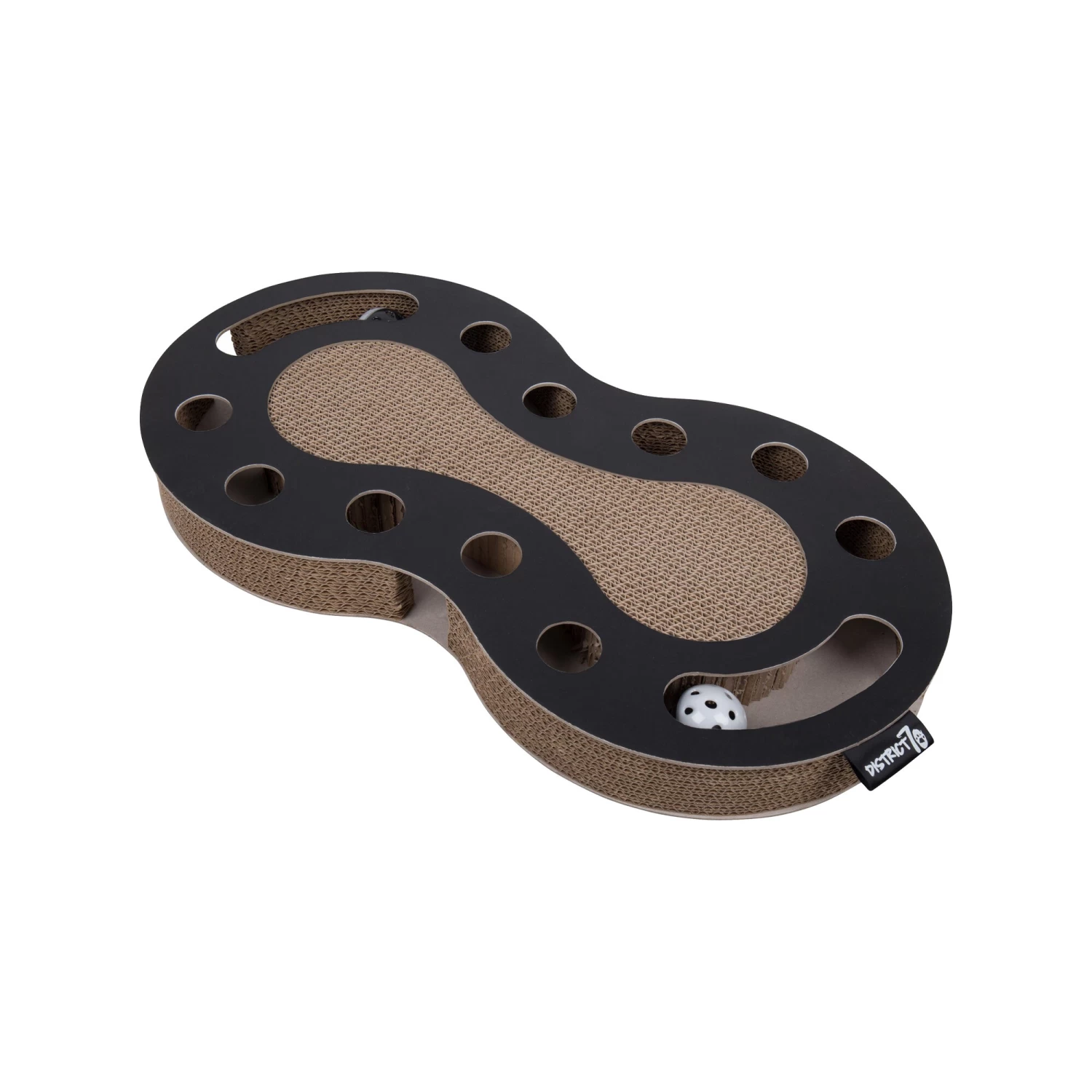 Dit multifunctionele SNAKE speeltje van District 70 is een krabbord en speeltje in één. Het draagt bij aan uw kat haar instinct om te jagen, achtervolgen en te spelen. De balletjes in de SNAKE maken geluid en zijn bereikbaar via de gaten aan de zij -en bovenkant van het bord. De kartonnen gedeeltes zijn er om te krabben en dragen bij aan het natuurlijke gedrag van uw kat om te klauwen.