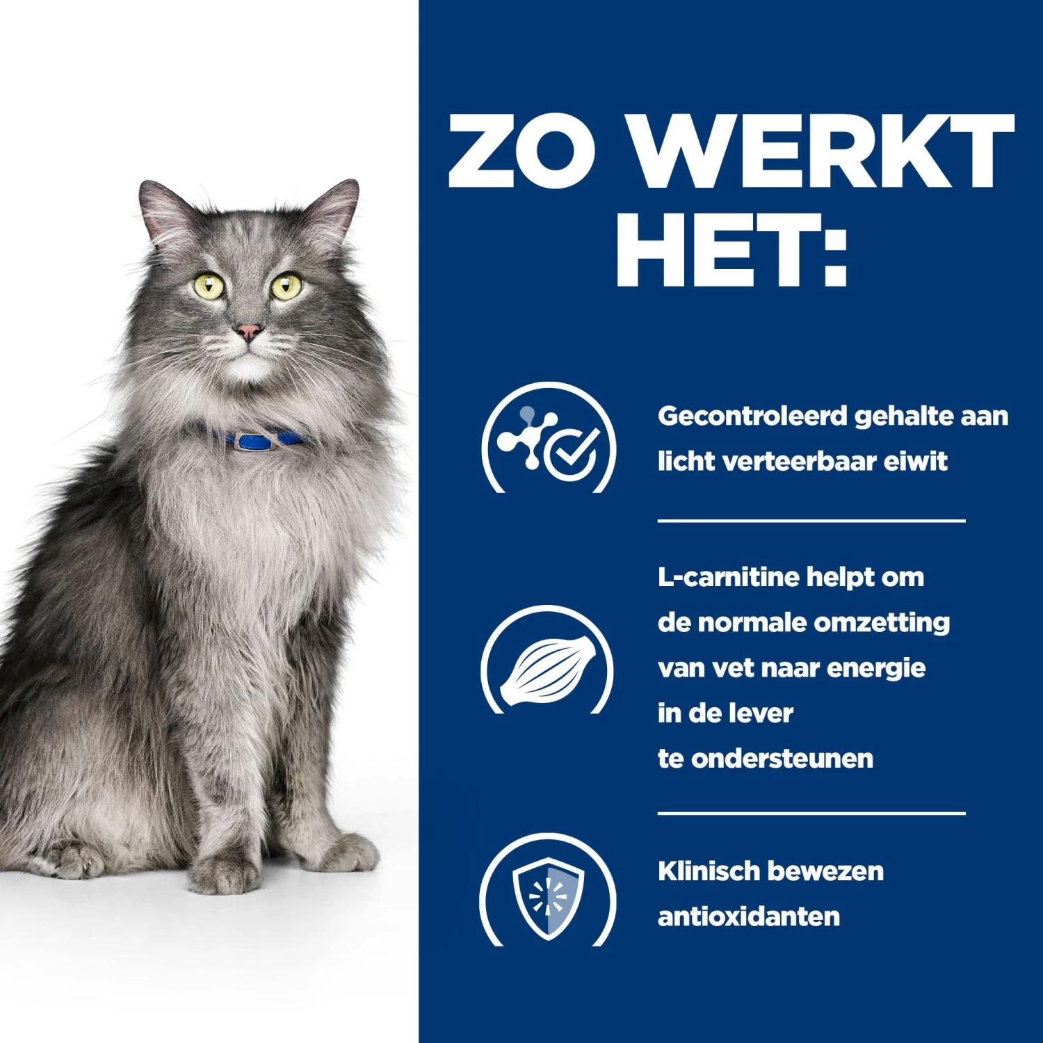 Hill’s l/d Liver Care -Prescription Diet – Feline is smakelijk voer voor katten met een leverstoornis. Hill’s l/d Feline bevat zeer goed verteerbare eiwitten, vetten en koolhydraten in een verlaagd, maar hoog uitgebalanceerd gehalte. Het belangrijkste voordeel hiervan is dat de werkbelasting van de lever hierdoor verlaagt wordt en de opname van voedingsstoffen verbeterd wordt. Daarnaast helpen de antioxidanten in deze voeding bij het neutraliseren van vrije radicalen en ondersteunen ze een gezond immuunsysteem. De vetten in deze voeding zorgen voor een goede energievoorziening. De combinatie van oplosbare en onoplosbare vezels heeft een ondersteunende werking op een evenwichtige spijsvertering. Een van die vezels is FOS, een prebiotische vezel, die een bijdrage levert aan de groei van heilzame darmbacteriën die helpen om een gezond en gebalanceerd intestinaal microbioom te bevorderen. Tot slot bevat dit kattenvoer omega 3 & 6 vetzuren, die een bijdrage leveren aan een gezonde huid en glanzende vacht.