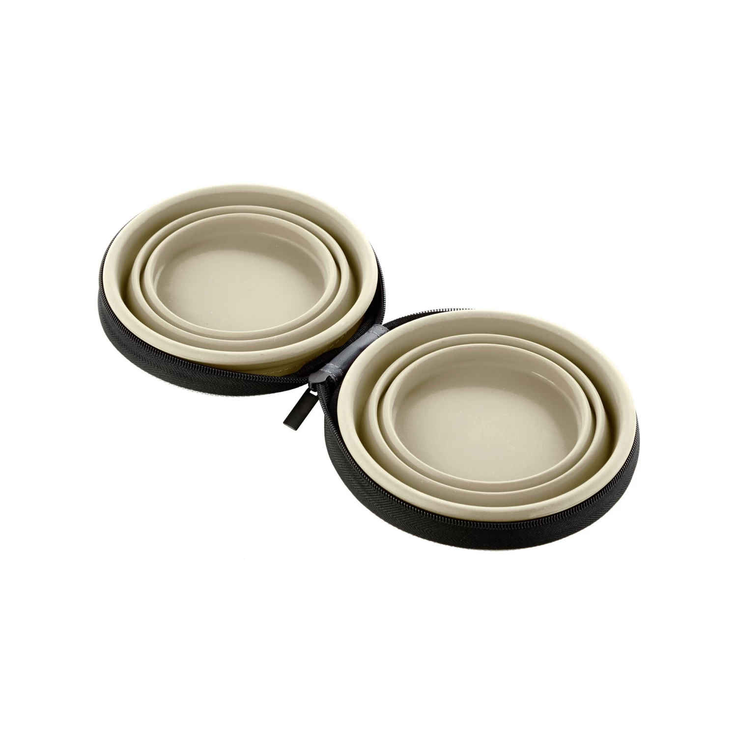 Gaat u vaak met uw hond op reis of bent u veel met hem of haar onderweg? Dan zijn deze siliconen reiskommen van Hunter echt iets voor u! De reiskommen zitten opgeborgen in een handig tasje met ritssluiting. U vouwt de kommen gemakkelijk uit en kunnen zo heel snel gebruikt worden als drink- en/of voerbakken. Het is makkelijk schoon te maken en vervolgens kunt u ze weer dichtvouwen en het tasje opbergen in uw reistas!