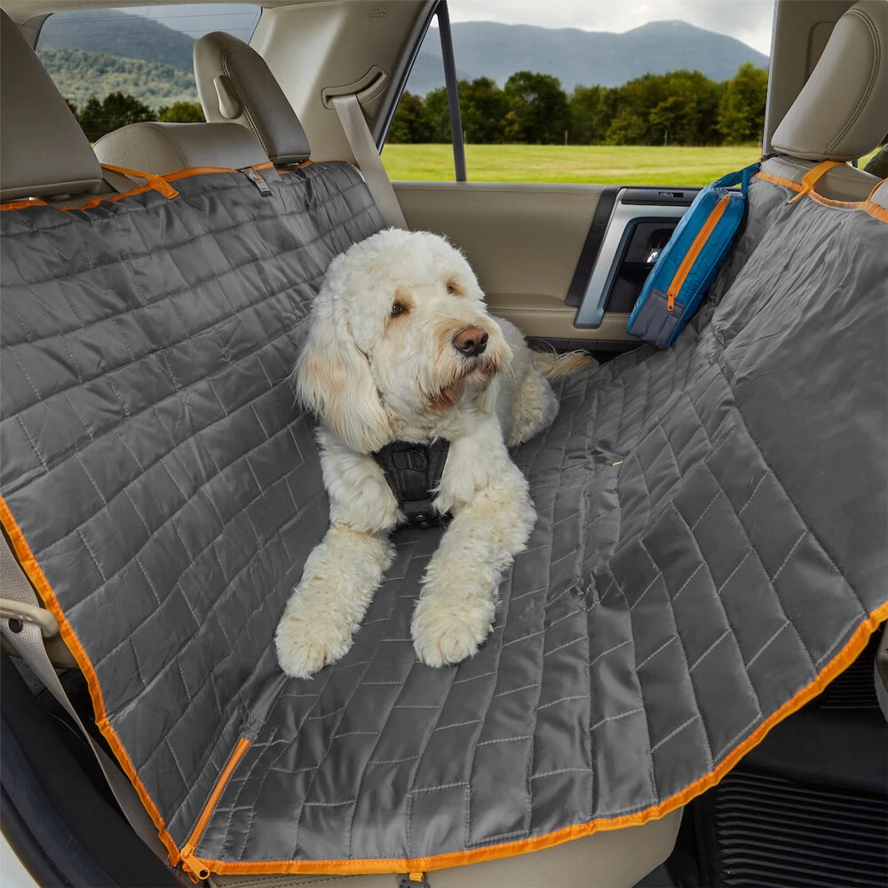 Houd uw auto schoon met de ‘hangmat’ voor op de achterbank. Deze autodeken van Kurgo kan wel tegen een stootje en creëert ook meteen een fijne plek voor uw huisdier. De Loft Hammock is gemaakt van Microtomic ™ ripstop-materiaal met polytech-vulling en biedt daardoor een goede bescherming van de auto. De hangmat is volledig omkeerbaar en met zijn zes bevestigingspunten heeft deze hoes een aangepaste pasvorm en stijl. Uw viervoeter valt niet tussen de voorstoelen en achterbank want het denken beschermt deze gehele omgeving. De hangmat is waterbestendig en wasbaar in de machine. Het is nog steeds mogelijk om gebruik te maken van veiligheidsgordels door de openingen met ritssluitingen. Kortom: een multifunctionele autodeken!