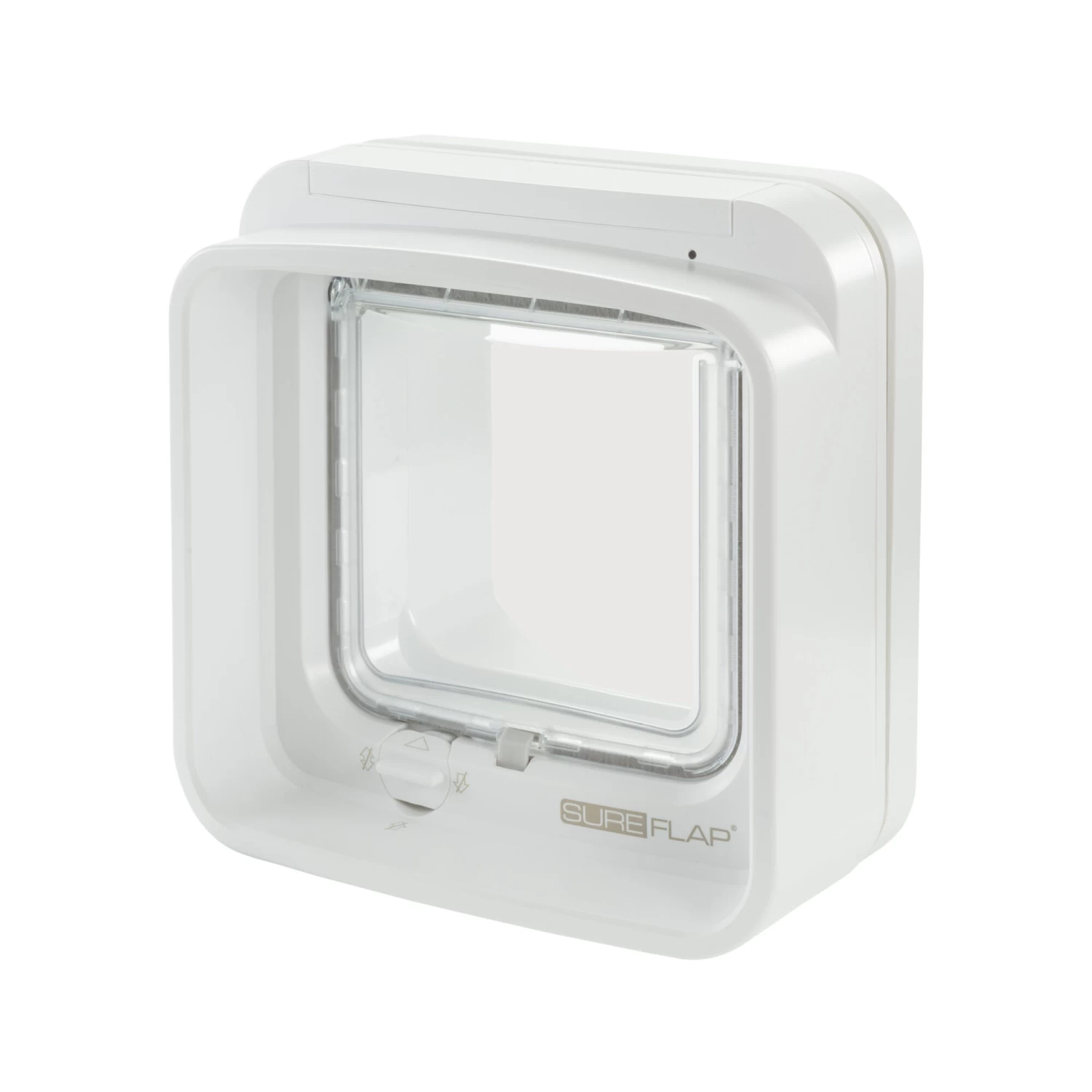 In het Dualscan kattenluik zit een sensor verwerkt die iedere kat die naar binnen en naar buiten wil scant. Indien uw kat niet gechipt is, kunt u een RFID-Penning aan de halsband van uw kat bevestigen. U kunt de Microchip of Penning van uw kat koppelen aan het SureFlap systeem zodat uw kat altijd door de sensor herkend zal worden. Wanneer het kattenluik uw kat herkent, wordt de magneetsluiting van het luik ontgrendeld en kan uw kat naar binnen. U kunt zelf instellen welke kat naar binnen en naar buiten kan.