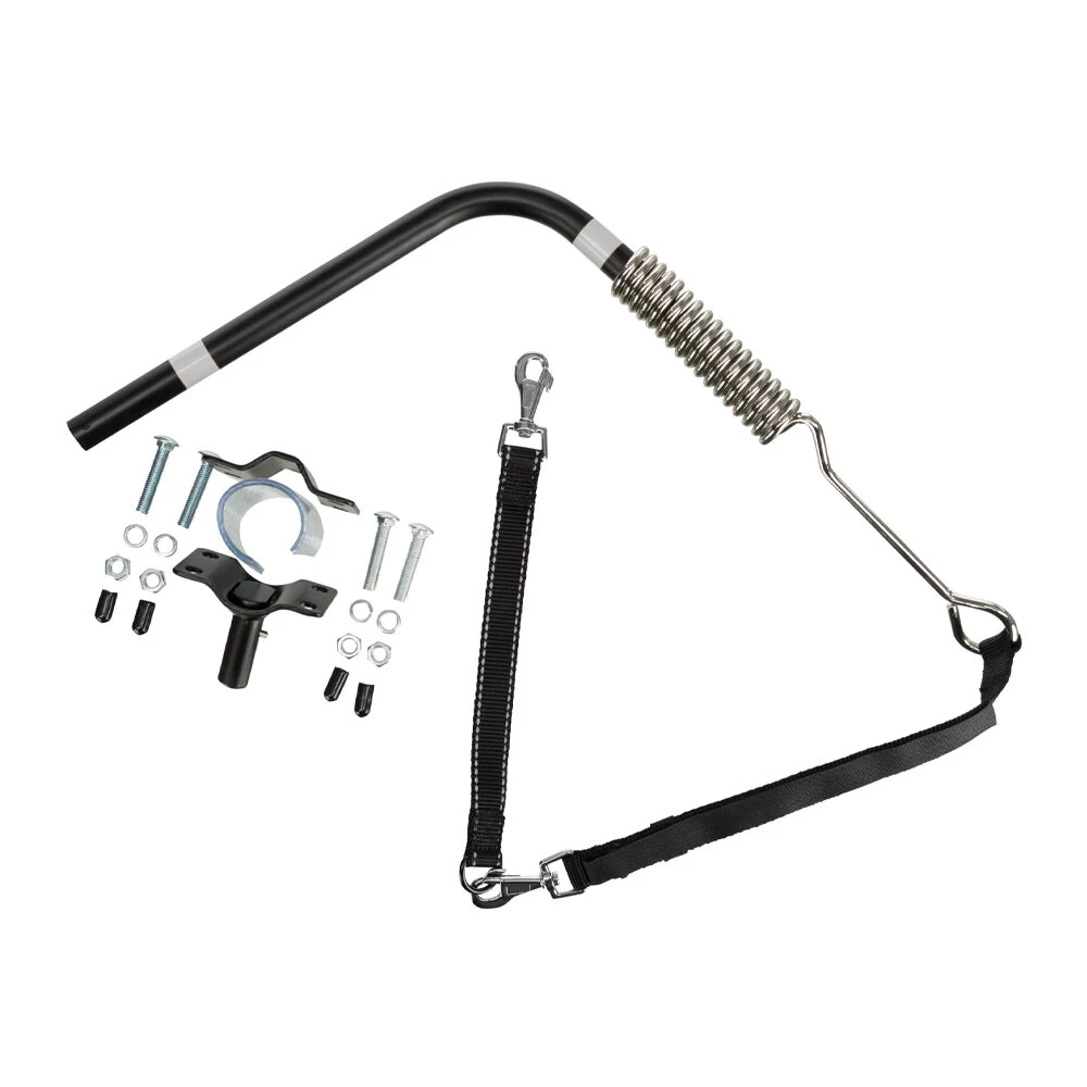 De fietsbeugel is gemaakt van metaal. Het bijgeleverde riempje is zwart.